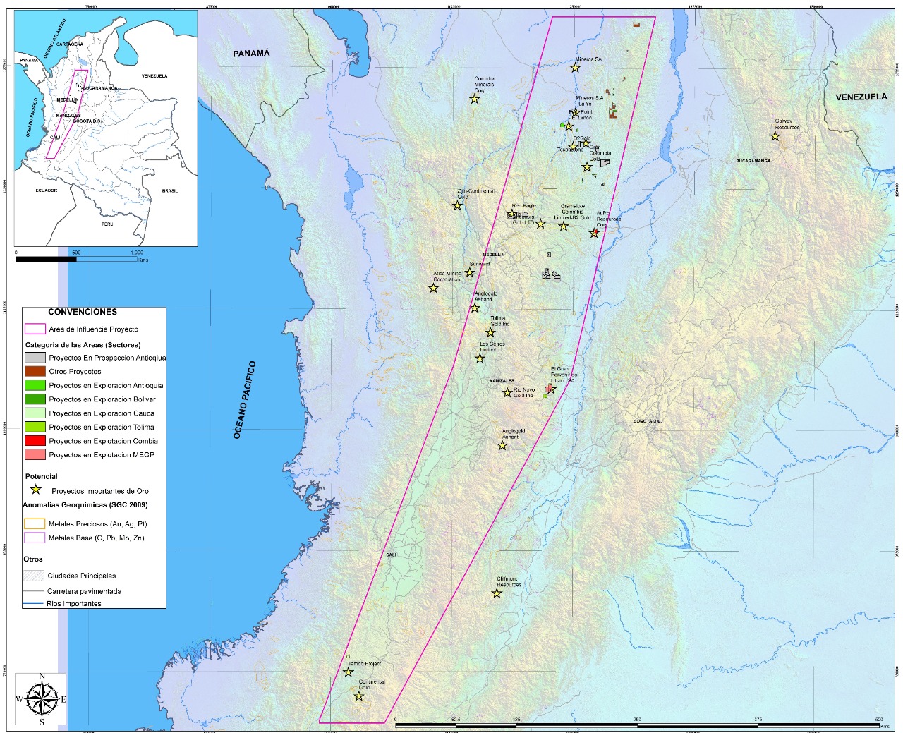 En el Departamento del Tolima, se encuentra el proyecto principal en explotación, Mina EL Gran Porvenir del Libano (MGPL), con aproximadamente 3.600 Ha., además se tienen 1.400 ha para exploración geológica, diferentes a las del proyecto MEGPL.